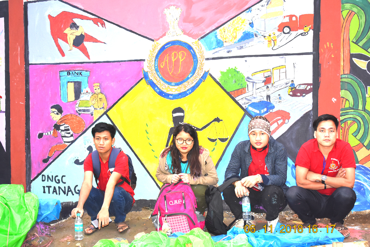 05/11/2018- 07/11/2018 | Mural Painting on Walls at Police Mess, Chimpu & Police Headquarters. Chief Guest Hon'ble Minister Sri Mahesh Chai, Guest of honour Padma Shri Mamang Dai, Special Guest Smt. Nandita Gopal, Dr. Sushi Singh, Chief Advior of APPWS attended. |