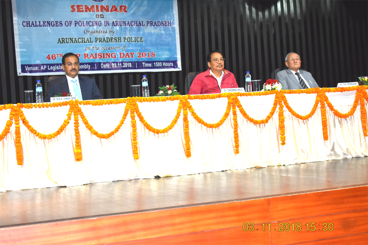 03/11/2018 | Seminar on challenges of Policing in Arunachal Pradesh at Arunachal Pradesh Legislative Assembly Auditorium. Chief Guest hon'ble speaker Tenzing Norbu Thongdok, Guest of Honour Chowna Mein, Deputy Chief Minister, Govt. of Arunachal Pradesh and Sri. S. B. K. Singh, Director General of Police, Arunachal Pradesh attended |
