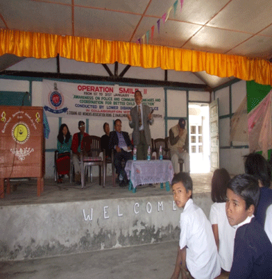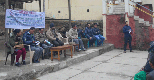 Dr. A. Koan, IPS, Superintendent of Police ,West Kameng District delivering lectures on Operation Smile-II campaign at Lower Gonpa Bomdila on 28/01/2016 attended by the Members of Bazar Committee Bomdila. |
