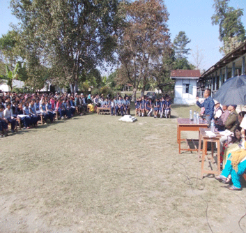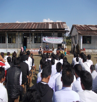Campaign at Roopland Public School, Rupa on 30/1/2016 (Shri Kardak Riba, APPS DySP(HQ) Bomdila delivering lectures to students). |