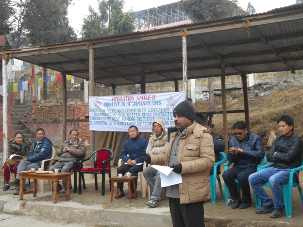 Shri G. Dajangju, APPS, SDPO Dirang delivering lectures on Operation Smile –II campaign at Lower Gonpa Bomdila on 28/01/2016 attended by the Members of Bazar Committee Bomdila. |