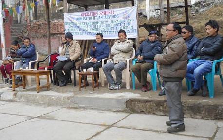Shri Niri Chongruju, Chairman, CWC,(Child Welfare Committee) West Kameng District delivering lectures on Operation Smile –II campaign at Lower Gonpa Bomdila on 28/01/2016 attended by the Members of Bazar Committee Bomdila. |