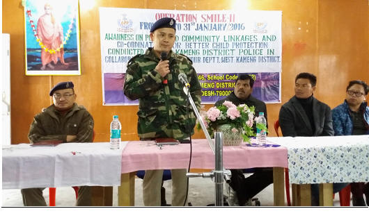 Shri D. Riba, ADC, Dirang delivering lectures on Operation smile-II campaign at Dirang Market on 29/01/2016 |